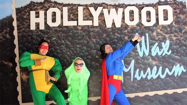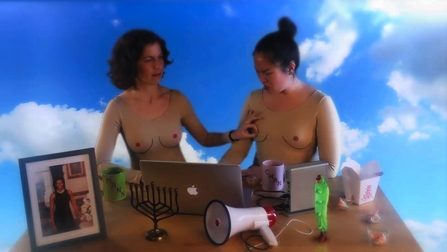 Chan's Mannese Theater was a video installation incorporating a painted theater and a video screening room. "Now Playing" in the theater was Chan & Mann's New Fantasy (The Video) (2013), a video which draws upon iconographic tropes of traditional figurative and still life painting to humorously deconstruct discourse in cultural identity. The absurdist video opens upon a painted scene depicting a not-so-ordinary day in the studio with Chan & Mann, whose faces appear as cut-outs in a painting. They converse with a cast of painted characters, such as Dorah the Menorah, Michelle Obama, fortune cookies, and a feminist megaphone. The characters are voiced by established and emerging members of the Los Angeles contemporary art community. Together, they wrestle with issues of feminist and ethnic identity. Live action scenes continue the narrative into everyday and imaginary spaces, including Hollywood's famed Grauman’s Chinese Theater. The video climaxes in a riveting third-wave feminist slam poetry performance by rising star Frank Sánchez.