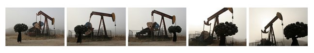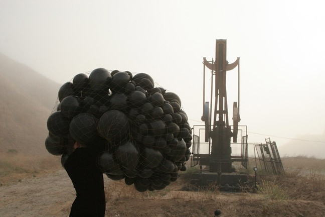 IBD (Improvised Balloon Device) was created at the height of the Iraq war "surge" in 2007. In the video, photographs and installation the artist becomes a living oil well, bubbling in mourning and anger.