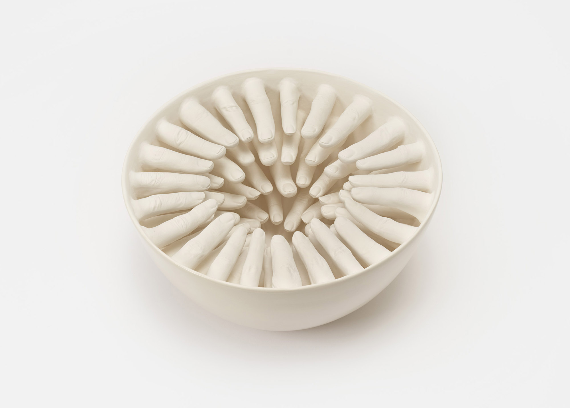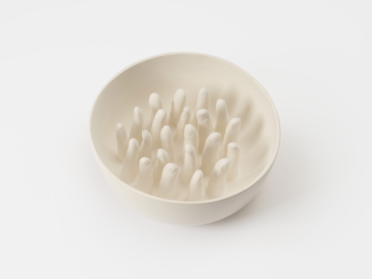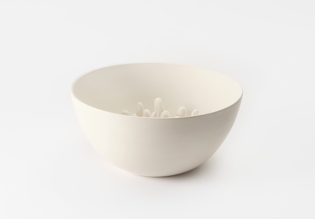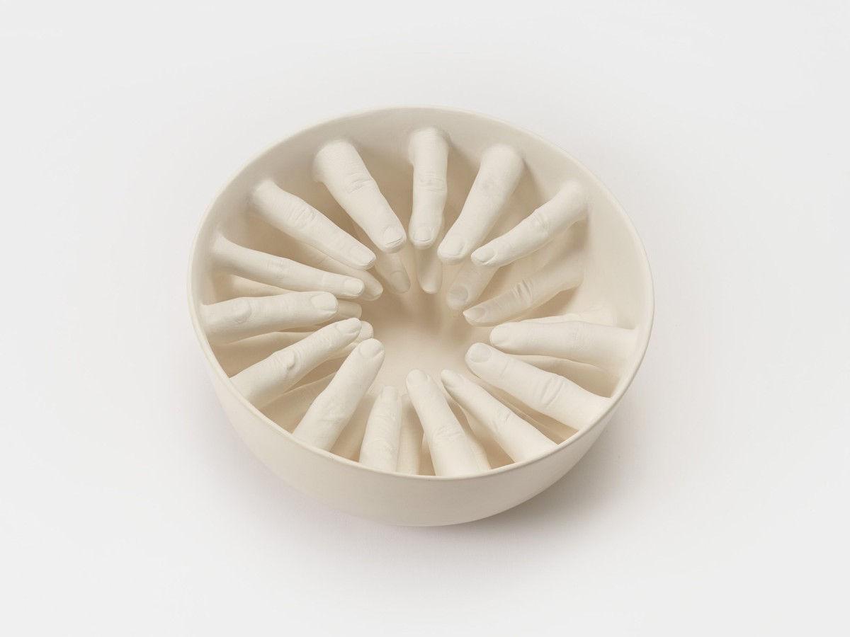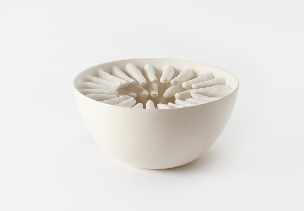 A series of ceramic bowls "...some are guilty, are all responsible," exploring ideas by philosopher and civil rights activist Abraham Joshua Heschel.
