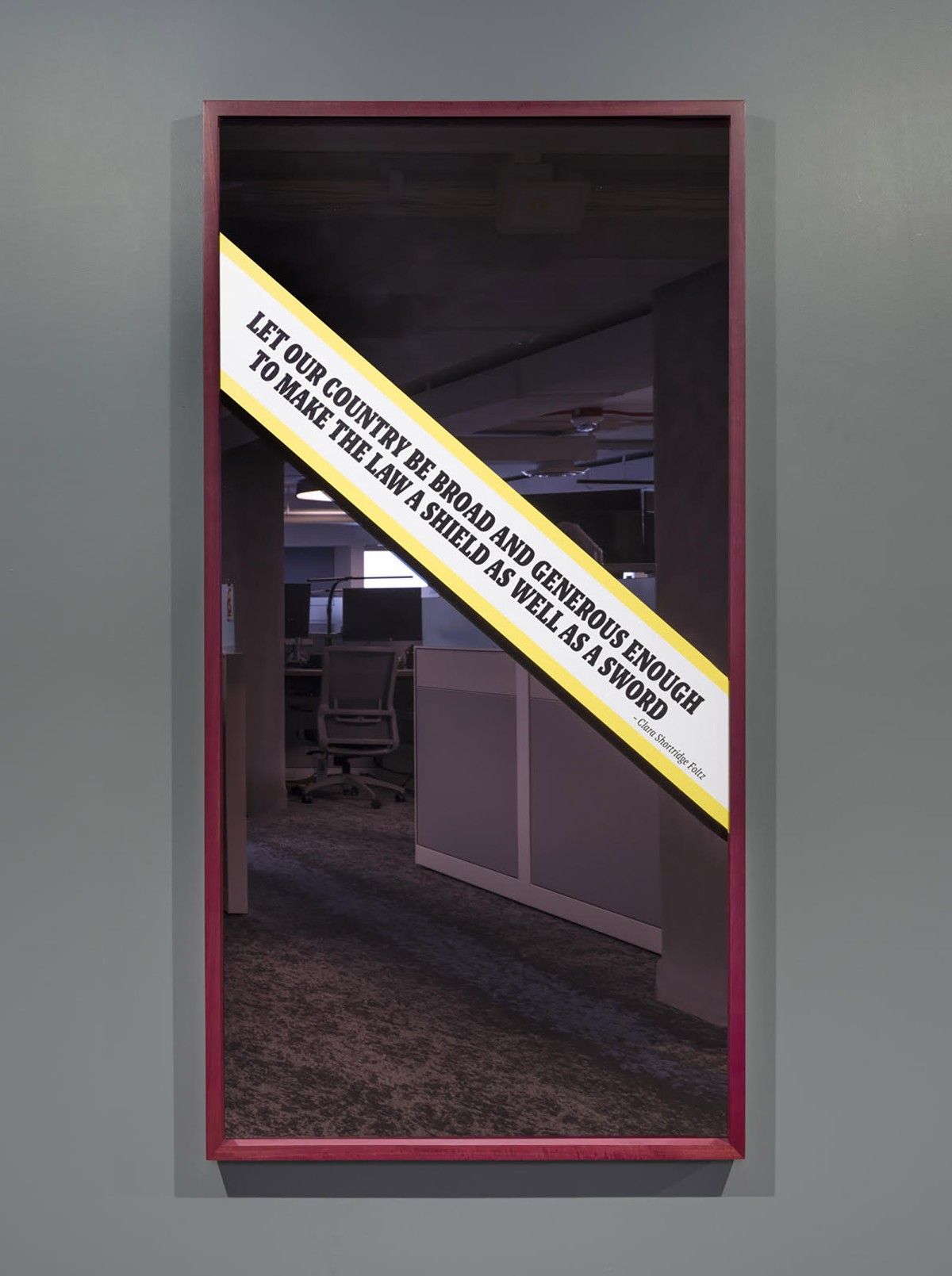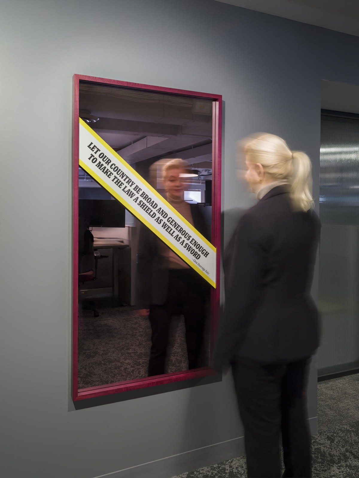By including a mirror in the design, the piece also pays homage to the people that currently work here. As I developed this artwork, I observed how the vision for the Public Defender has evolved beyond Foltz’s original vision, one which now includes rehabilitation, restoration, healing, and harm reduction. Thus, this piece creates an echo of history in the present day. In the artwork, Foltz’s dreams are intermingled and refined in the reflections of the individuals that continue to transform the legal system today.