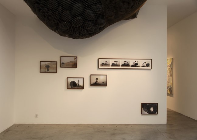 The IBD (Improvised Balloon Device) series is an installation with photographs, balloons, and netting.