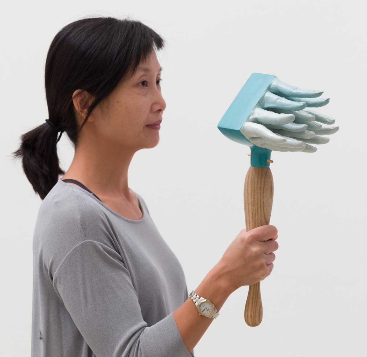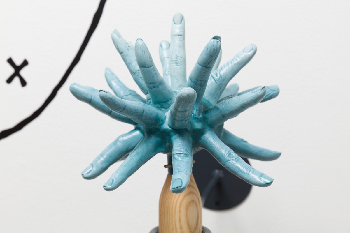 Mann’s instruments suffuse the human figure with acoustic properties. Her blame-game rattles and me-and-you-kazoos function both as highly crafted objects and utilitarian devices, accessible for audiences to play and handle in art as well as activist settings. In addition to the sculptural components Mann has invited composers, artists, and poets to produce scores for the exhibition, which will be performed throughout the show. The Japanese-Korean feminist art collective Tomorrow Girls Troop (TGT) also collaborated with Mann on posters that call attention to the erosion of women’s and LGBTQI rights in the current political administrations in the USA and Japan. Audiences can respond to these collaborative posters by calling 323 Projects, a telephone line as an exhibition site initiated by Tucker Neel, and leave messages answering the question: “What if women were in charge?” The audiences’ responses will be broadcast periodically from Pitzer’s clock tower throughout the duration of the exhibition.