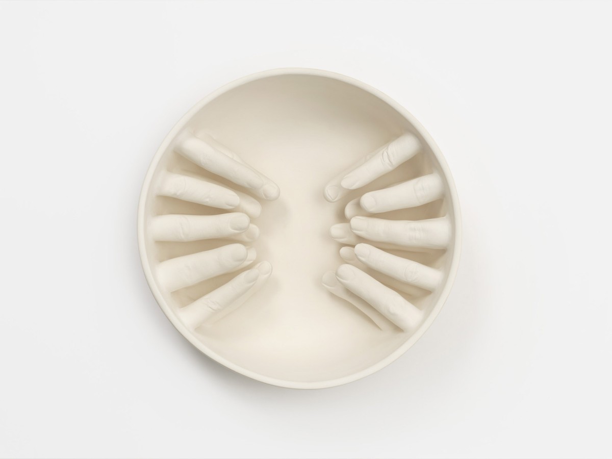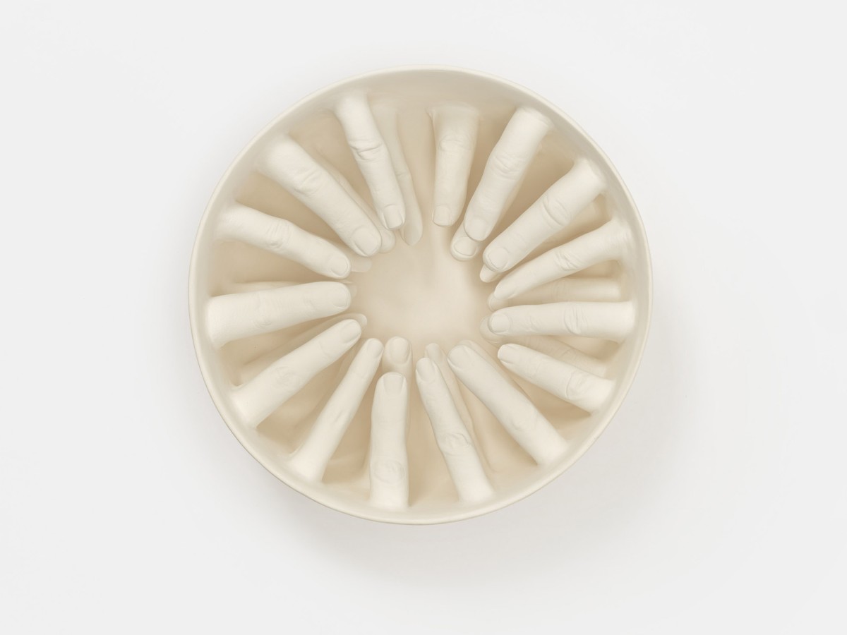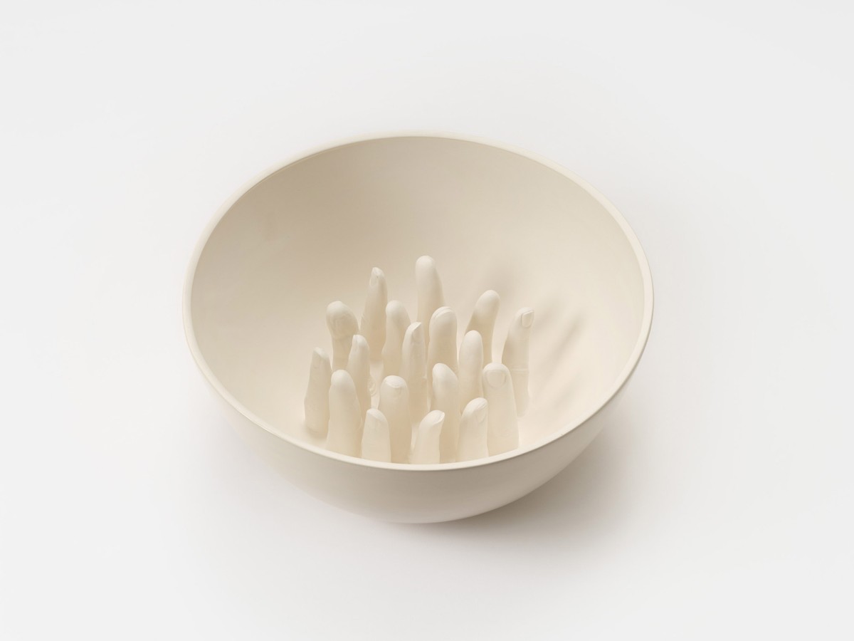 A series of ceramic bowls "...some are guilty, are all responsible," exploring ideas by philosopher and civil rights activist Abraham Joshua Heschel.