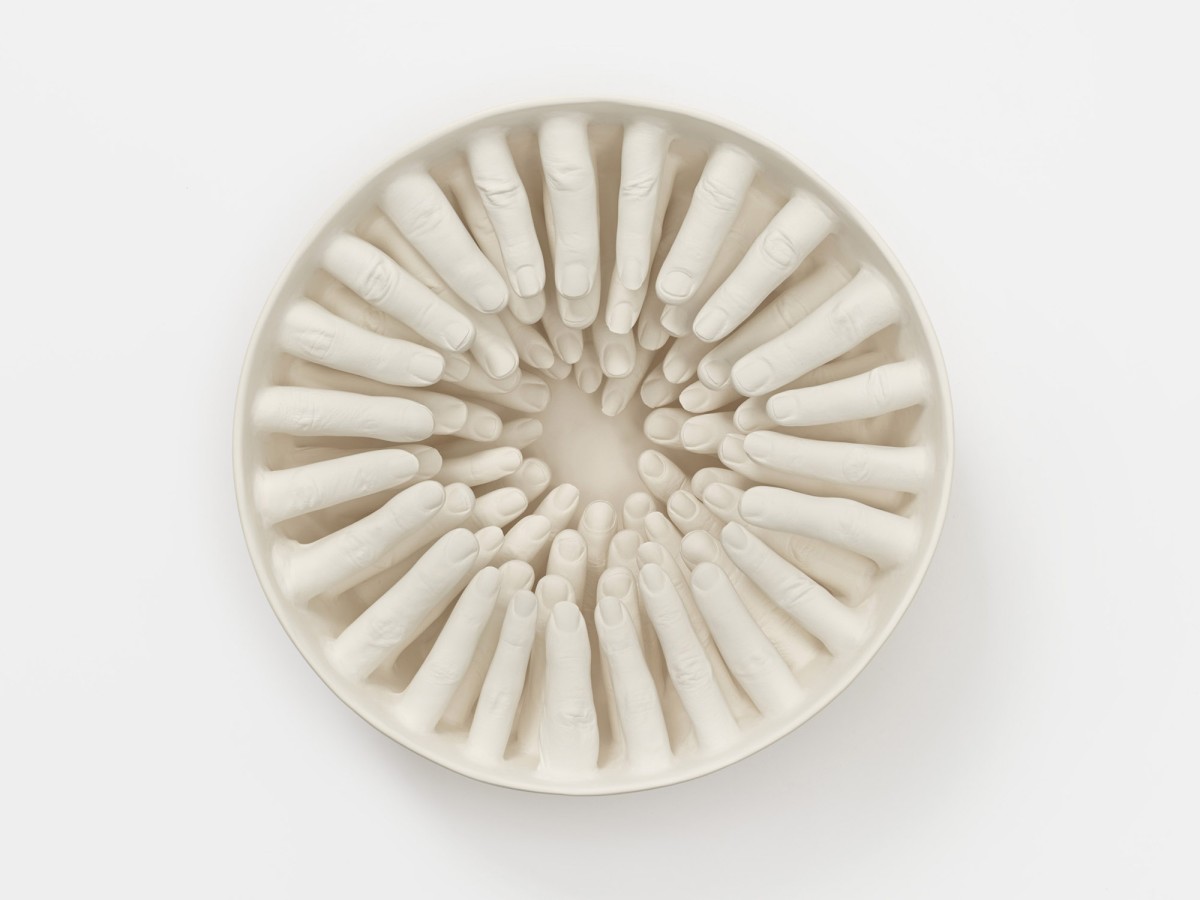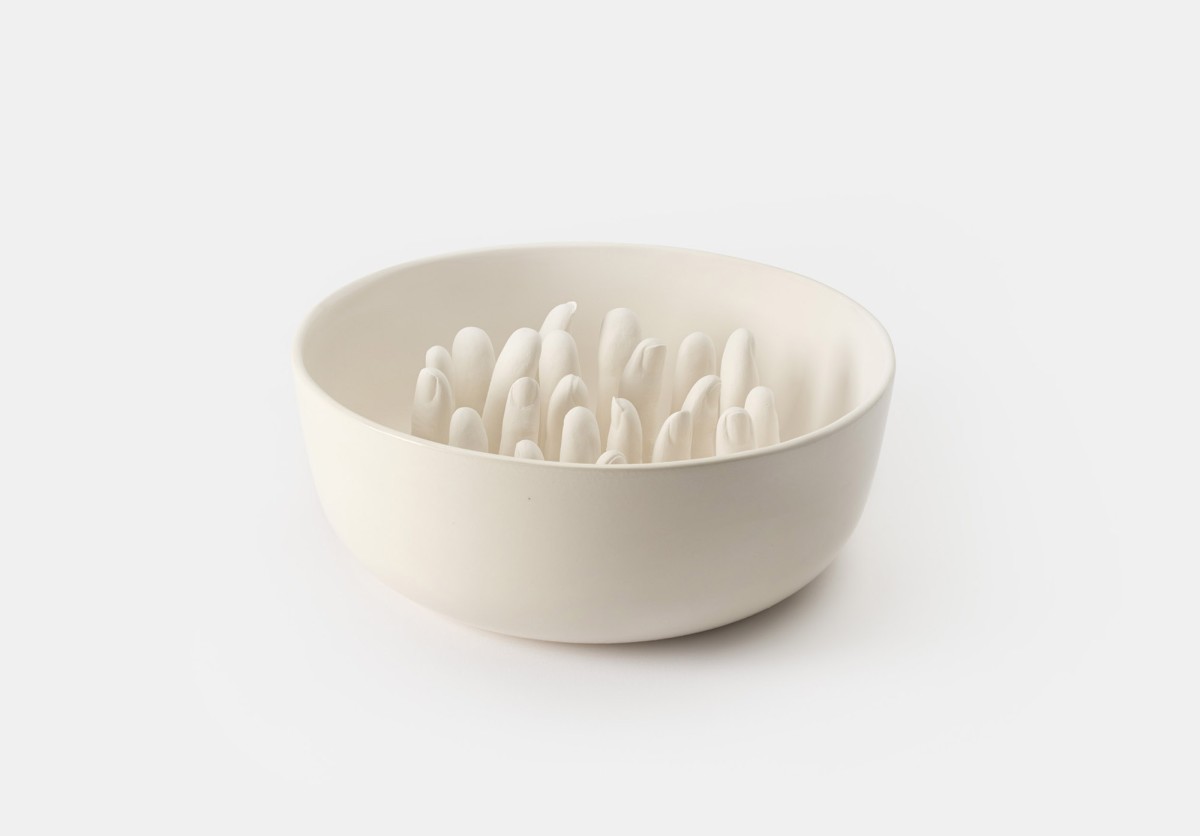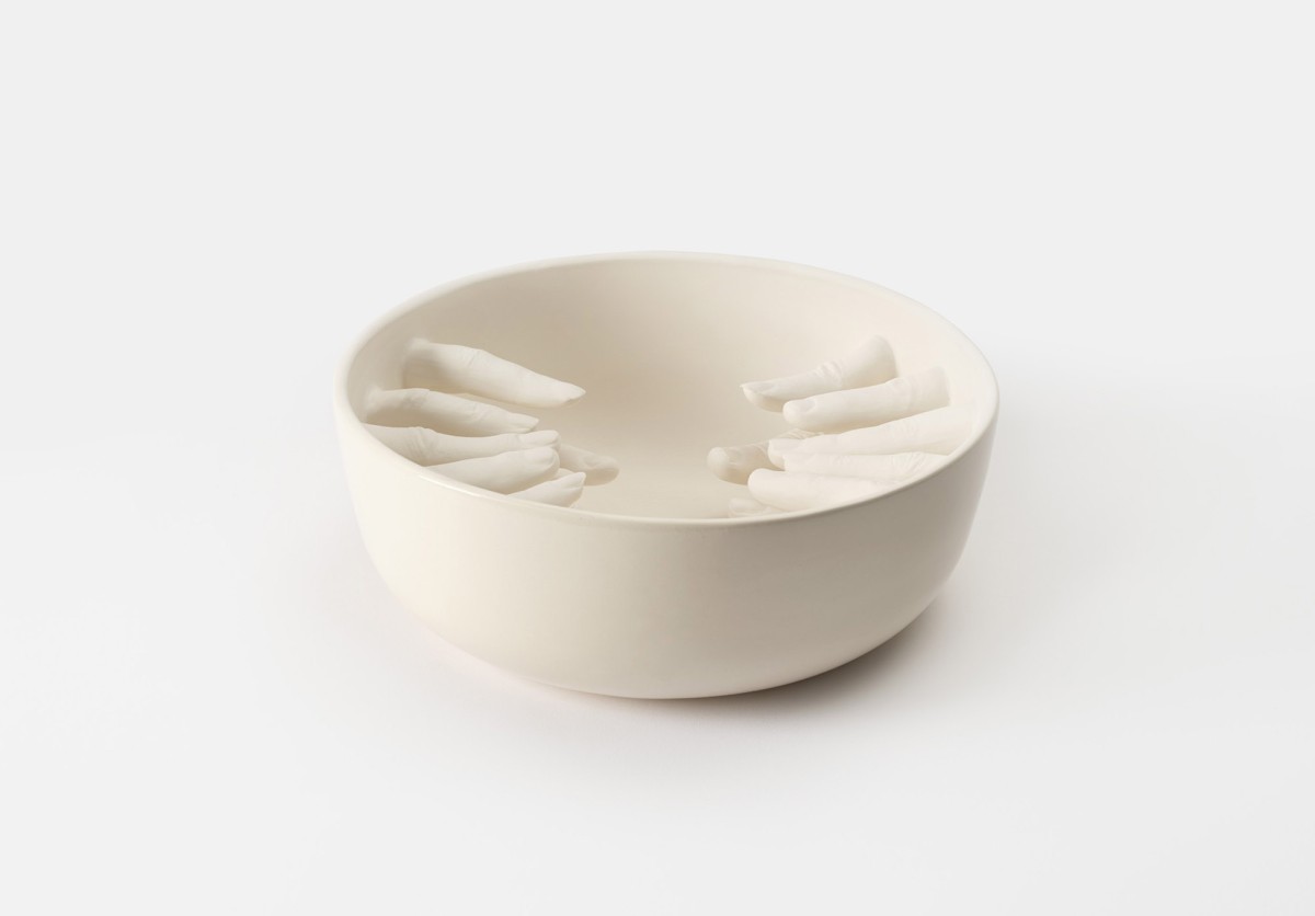A series of ceramic bowls "...some are guilty, are all responsible," exploring ideas by philosopher and civil rights activist Abraham Joshua Heschel.