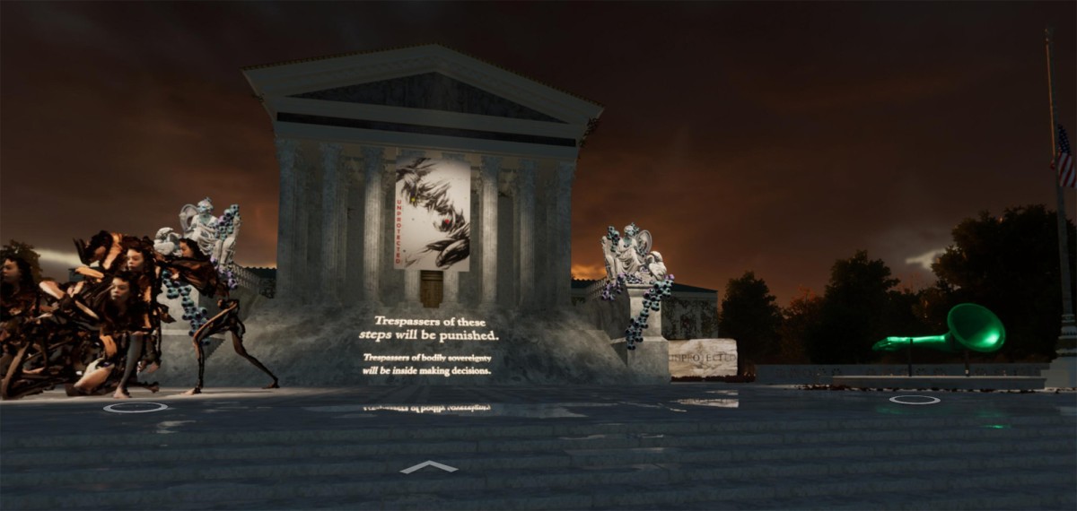 UNPROTECTED is modeled after the Supreme Court of the United States building. The overturning of Roe V. Wade represents not just a constitutional crisis of personhood and an abject abuse of power, but one with a growing range of cruel externalities beyond forced birth; including preventable infections, lost access to crucial autoimmune medications, and death. The state-sanctioned criminalization and surveillance of those seeking and providing reproductive care has a radial impact on the health care providers, family and friends who are involved in supporting pregnant individuals. Increased morbidities, poverty and incarceration will be inevitable and widespread outcomes. It isn’t enough to go back to the precarious protections afforded by Roe, in which many, especially impoverished people of color, were already forced into dangerous decisions between their livelihood and safe healthcare. Many lawmakers have already vowed even more sweeping national criminalization of pregnancy and contraception (along with increased targeting of all bodies that are not cisgender, heterosexual and male) as soon as Republicans once again control both houses of Congress. Voting blue is not enough. Today, our voices must be heard in every possible forum, state and federal: Reproductive justice and equitable abortion access must be enshrined in the Constitution, immediately. In this historic moment, artistic interventions will play a critical role in provoking meaningful public discourse and action. EPOCH offers an accessible and interactive opportunity to engage the public through powerful artwork, shared resources, and funding for reproductive justice.